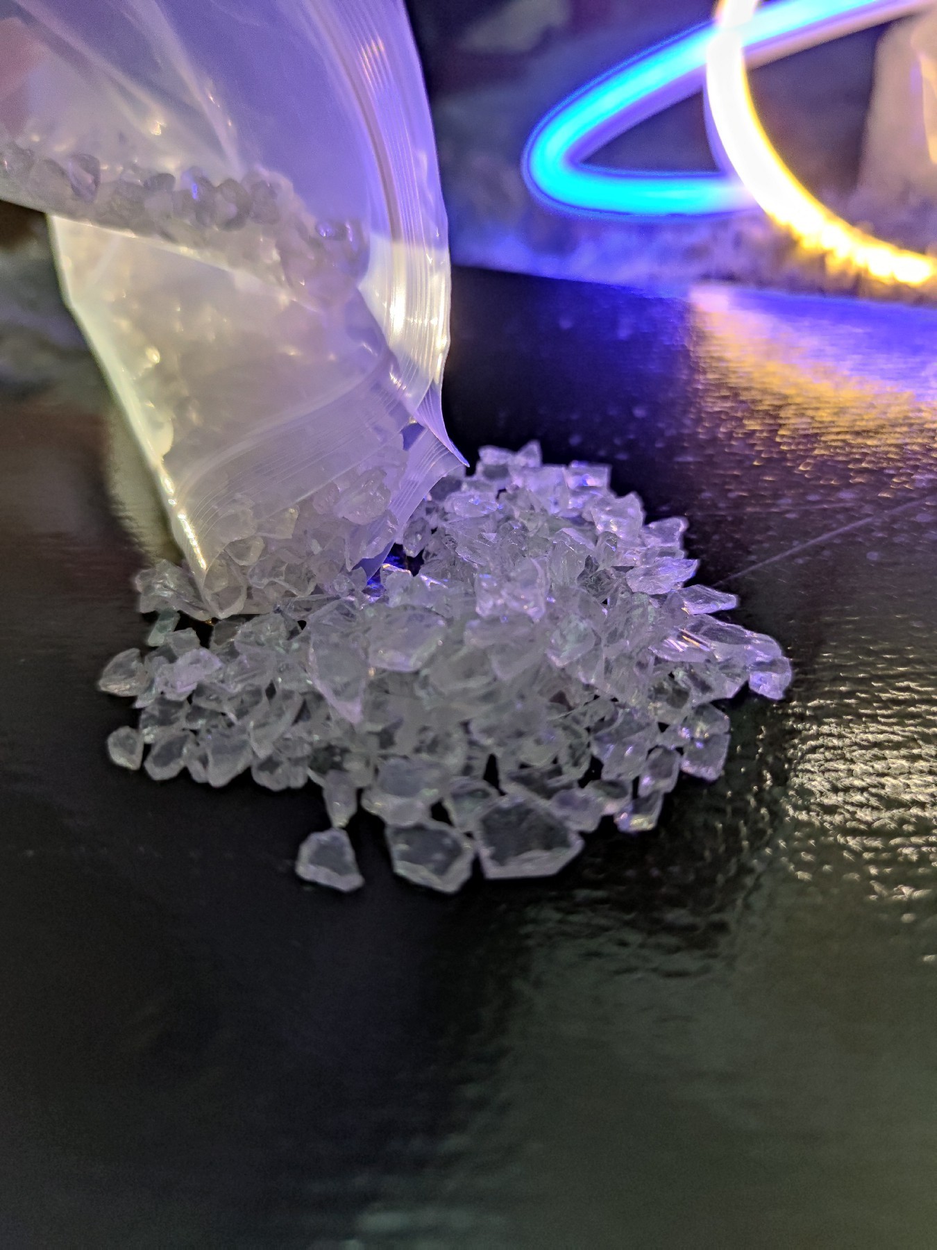 | Auftritt | Weiße oder hellgelbe transparente Flocken |